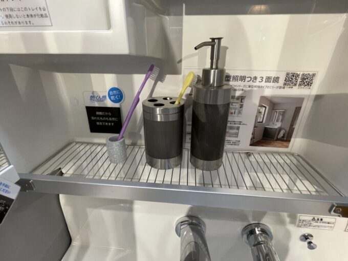 鏡には曇り止め加工が施されており、入浴後すぐでも快適に使用できます。この小さな配慮が、毎日の生活の質を大きく向上させてくれます。