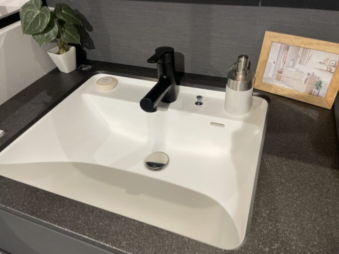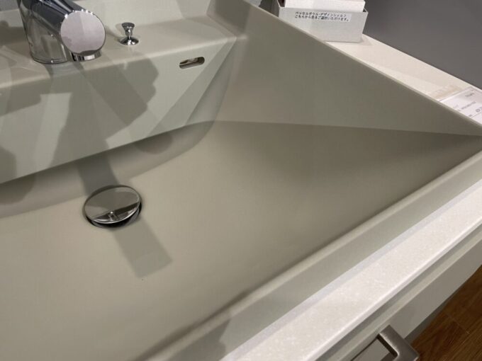 洗面ボウルとカウンターが一体成形されているため、継ぎ目に汚れが溜まる心配もありません。この設計は、見た目の美しさだけでなく、衛生面でも大きなメリットがあります。