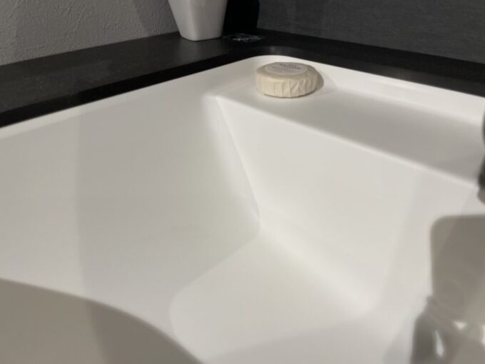 この人造大理石は継ぎ目のない一体成形で作られているため、汚れが溜まりやすい隙間がありません。水アカや石鹸カスも付きにくく、軽く拭くだけで清潔な状態を保てます。実際に設置されたお客様からは「掃除の手間が驚くほど減った」という声を多くいただいています。
